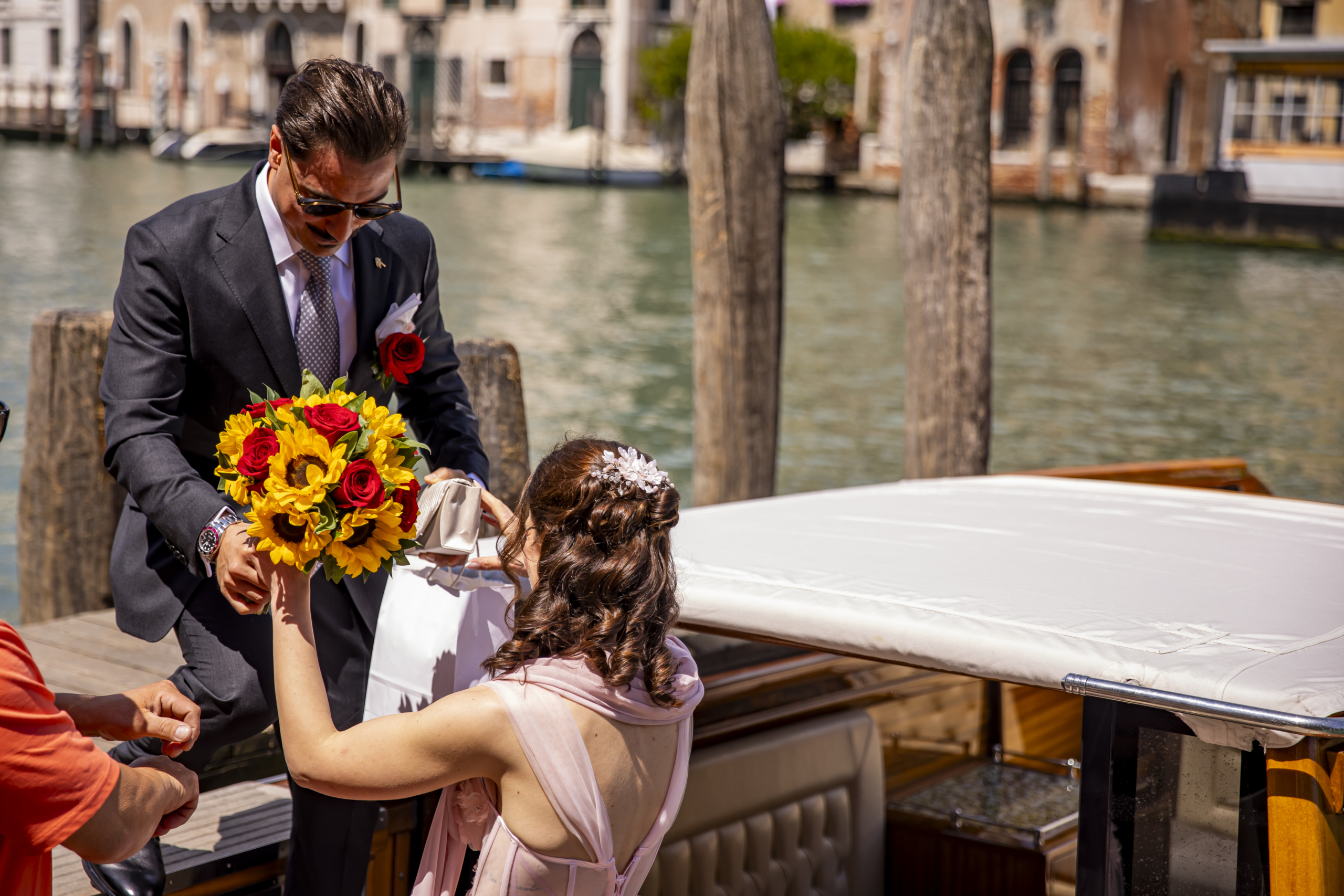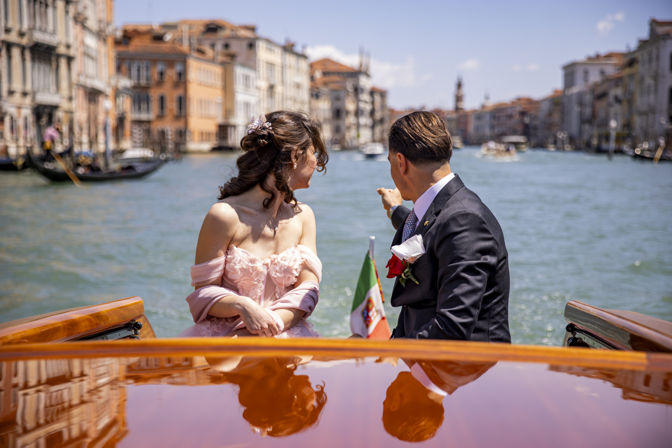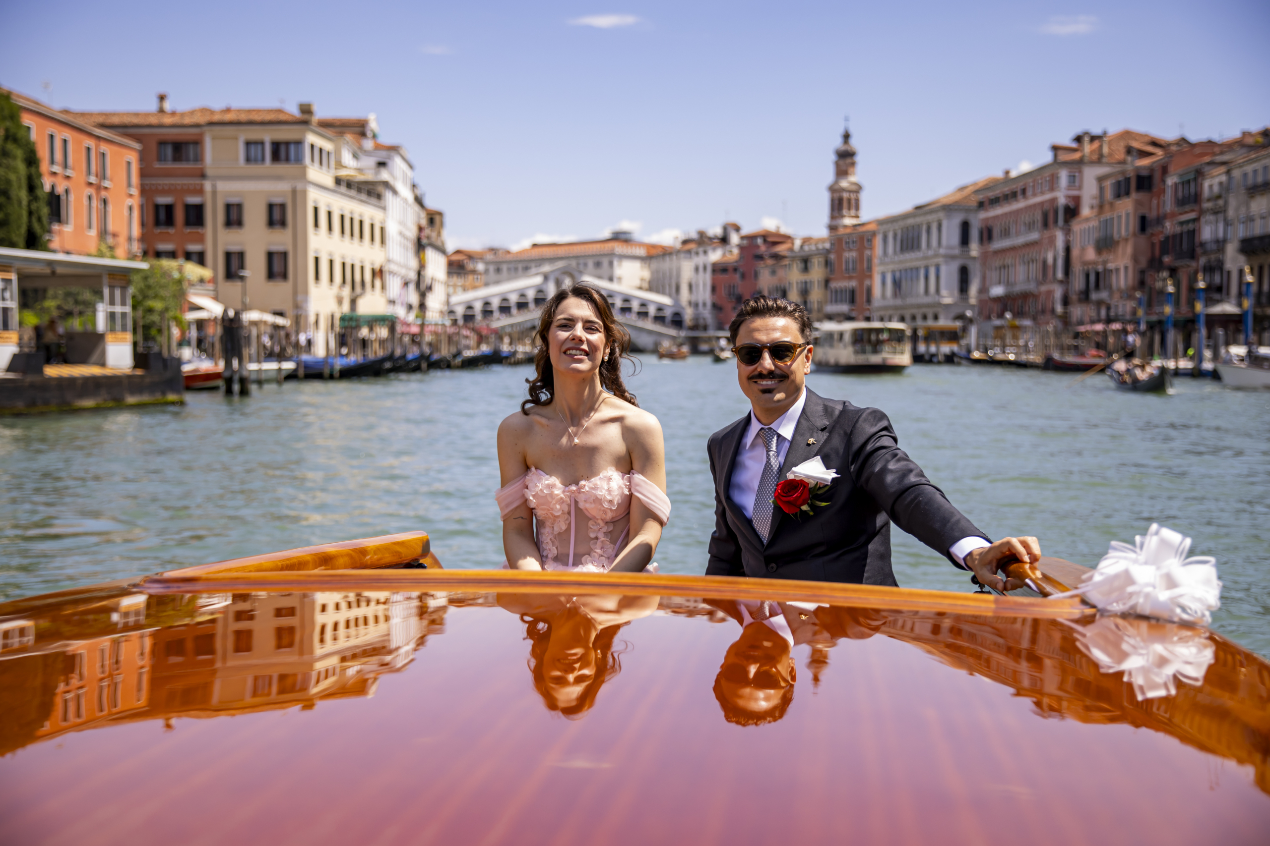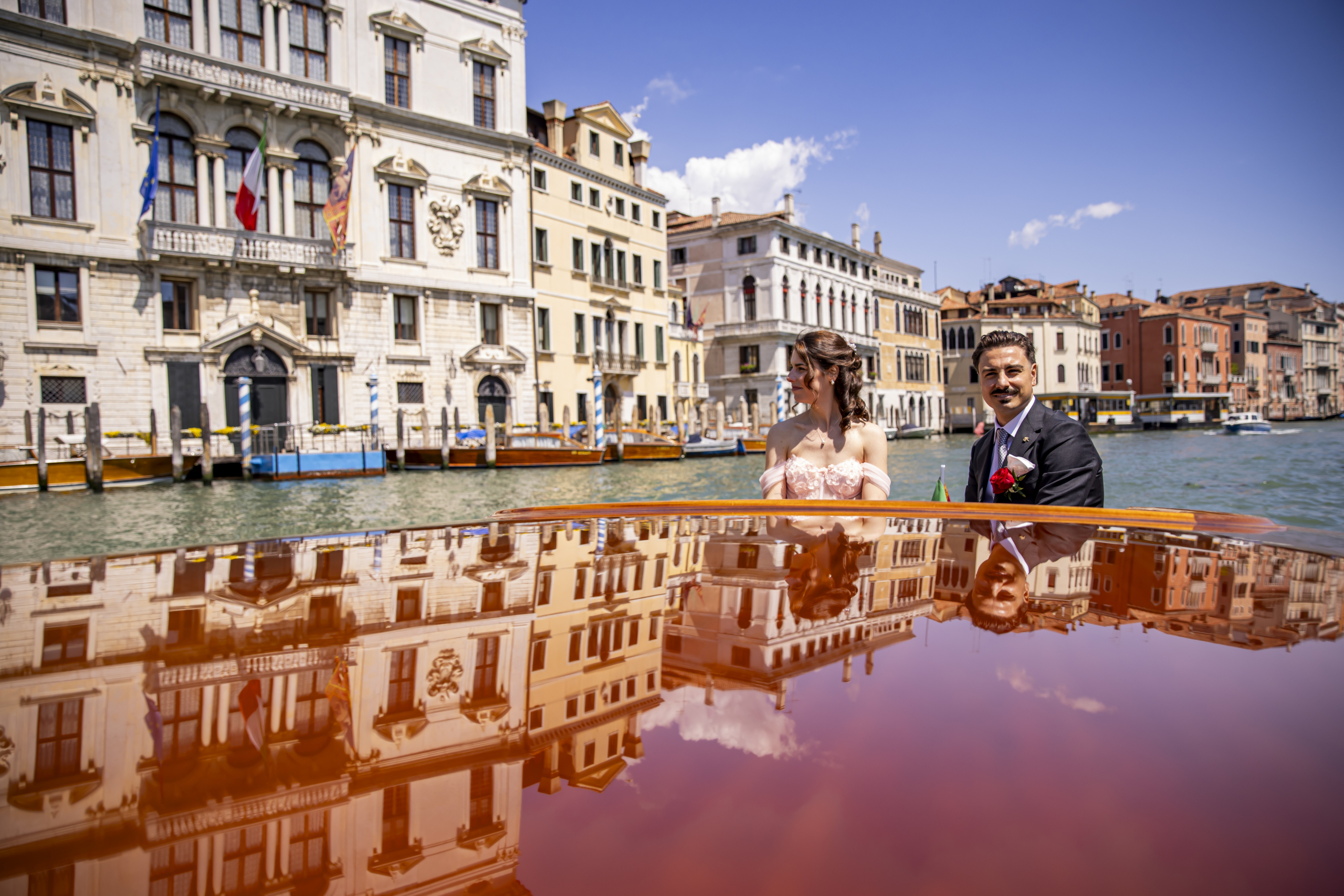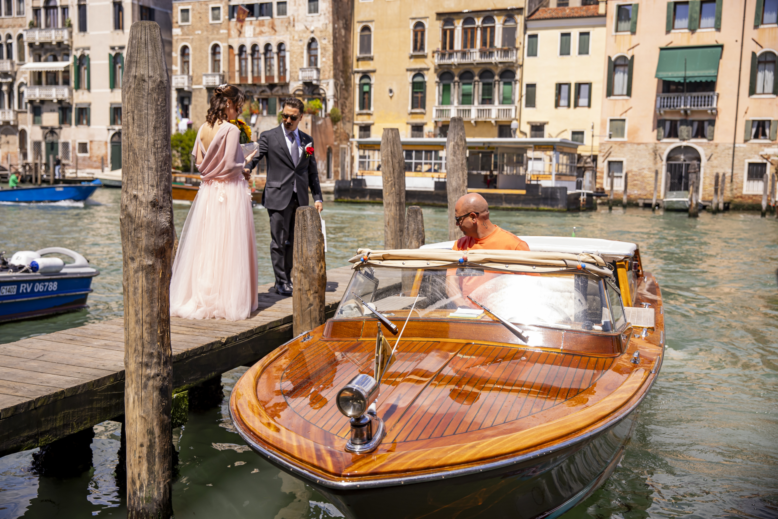 Rendi il giorno più importante della tua vita ancora più speciale con un arrivo da sogno. Il nostro Wedding Service ti accompagna in taxi acqueo privato, tutto in legno, attraverso i canali della città più romantica del mondo.